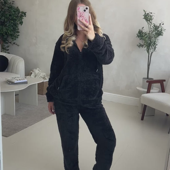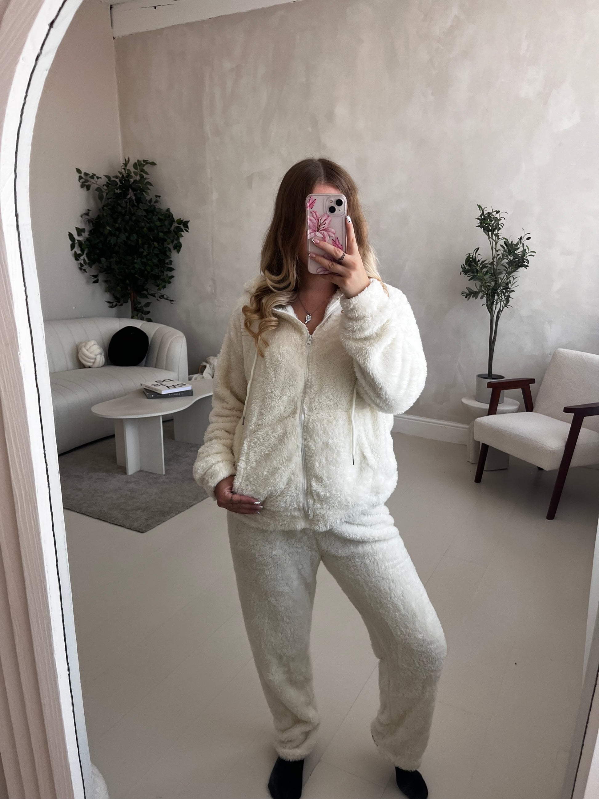 Stay cozy without compromising on style. This fleece lined zip-up hoodie and matching straight-leg trouser set is made for ultimate comfort while still looking chic. Super soft, stretchy and warm — it’s the perfect autumn/winter essential.