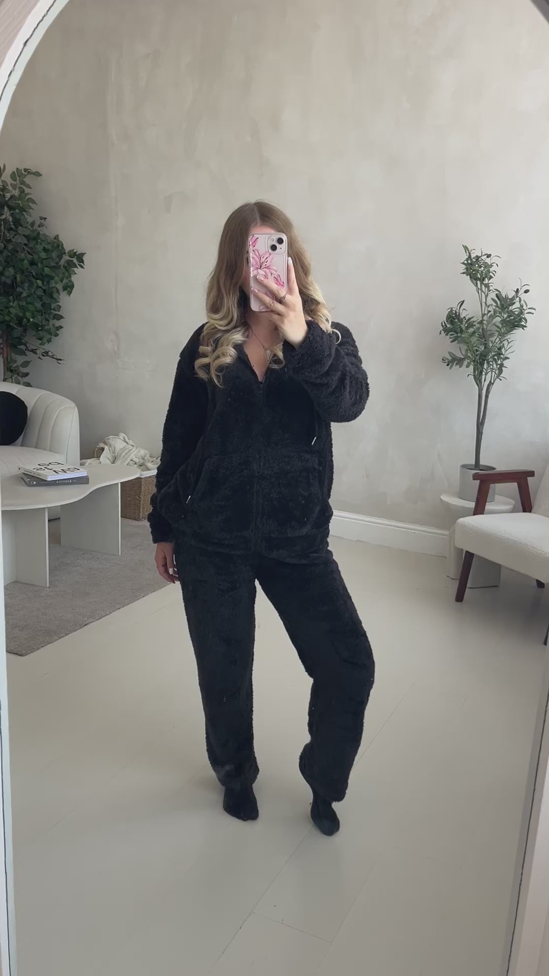 Available in cream and black, this versatile set is ideal for lounging at home, coffee runs, or layering up on chilly days. One size fits UK 6–12 (small 14).